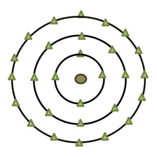 When working with trees/shrubs/vines, Dr. Ingham recommends starting 2 ft. from the base/trunk of each plant and creating 4 equidistant injection sites around the plant. Injection should be continued outward at 2 ft. intervals, doubling the number of sites to form a concentric circle pattern, (see diagram) with the final circle of sites being at the edge of the plant canopy, or just slightly beyond it.